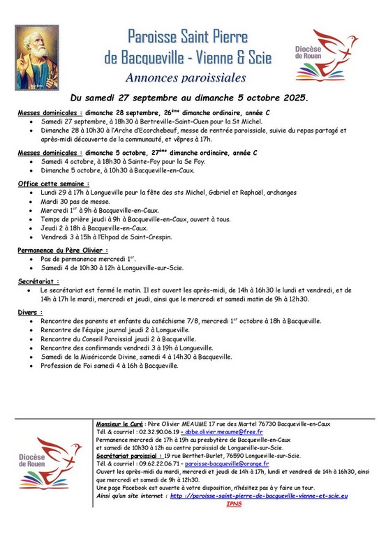 Bienvenue sur le site de la Paroisse Saint Pierre de Bacqueville - Vienne et Scie